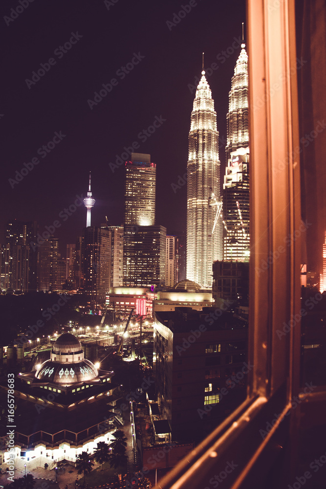 Spectacular Night City View From Office Window Kuala Lumpur Famous Skyscrapers Malaysia Business Metropolis Modern Buildings Luxurious Travel Urban Cityscape Metropolitan Architecture Nighttime Stock Photo Adobe Stock